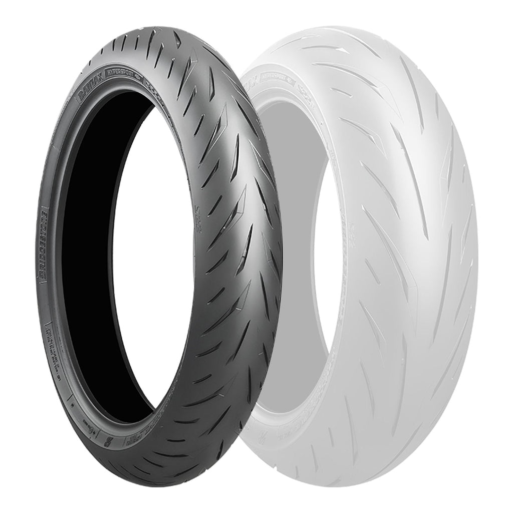 The aim of the Battlax S22 is to allow riders to experience the full extent of their bikes performance on the road (and in fairness, theyll be more than up to the odd track day as well!) Bridgestone engineers have adopted a brand new tread pattern design for several reasons: - Firstly, they have increased the Land/Sea ratio in the shoulder area, offering increased amounts of edge grip and reducing slippage towards the end of the contact area. - Secondly, the angle and alignment of tread grooves have been altered to re-distribute the working forces across the tyre. This makes for light handling, improved feedback, and optimal water drainage when riding in the wet. The rear tyre continues to use Bridgestones unique 5-Layer Compound structure, with the very softest compound found right at the edge for maximum cornering grip. The use of 5LC makes for more progressive handling, while retaining a harder central band for durability. Chemists have worked on a brand new compound mix, using fine silica molecules across the central area, which has led to a 25% increase in the amount of silica touching the road surface when compared with the S21. Silica is great for boosting grip levels in both cold and wet conditions.