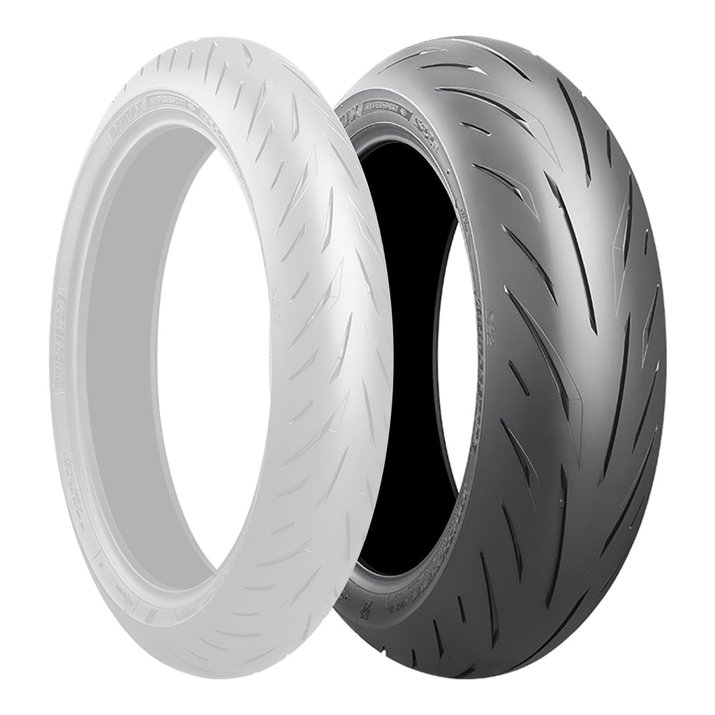The aim of the Battlax S22 is to allow riders to experience the full extent of their bikes performance on the road (and in fairness, theyll be more than up to the odd track day as well!) Bridgestone engineers have adopted a brand new tread pattern design for several reasons: - Firstly, they have increased the Land/Sea ratio in the shoulder area, offering increased amounts of edge grip and reducing slippage towards the end of the contact area. - Secondly, the angle and alignment of tread grooves have been altered to re-distribute the working forces across the tyre. This makes for light handling, improved feedback, and optimal water drainage when riding in the wet. The rear tyre continues to use Bridgestones unique 5-Layer Compound structure, with the very softest compound found right at the edge for maximum cornering grip. The use of 5LC makes for more progressive handling, while retaining a harder central band for durability. Chemists have worked on a brand new compound mix, using fine silica molecules across the central area, which has led to a 25% increase in the amount of silica touching the road surface when compared with the S21. Silica is great for boosting grip levels in both cold and wet conditions.
