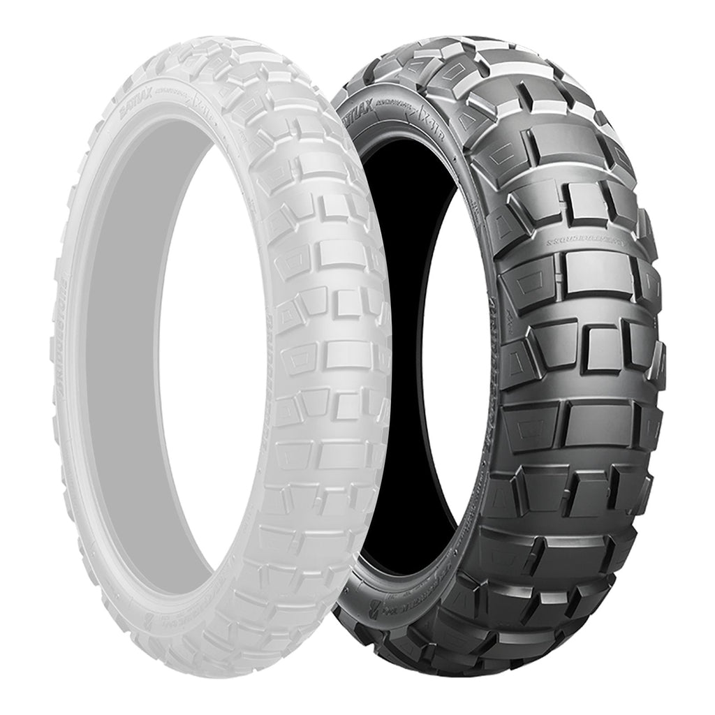 Battlax Adventurecross AX41: explore the unknown This updated trail off-road tyre has been designed to respond to adventure riders requirements. Off-road traction has been upgraded and the grip increased through state-of-the-art block design and positioning, while the use of a high-strength compound ensures durability and a long lifespan. With on- and off-road performance optimised, the Battlax Adventurecross AX41 gives riders the confidence to venture into new areas, follow new paths and enjoy every moment as they explore the unknown.