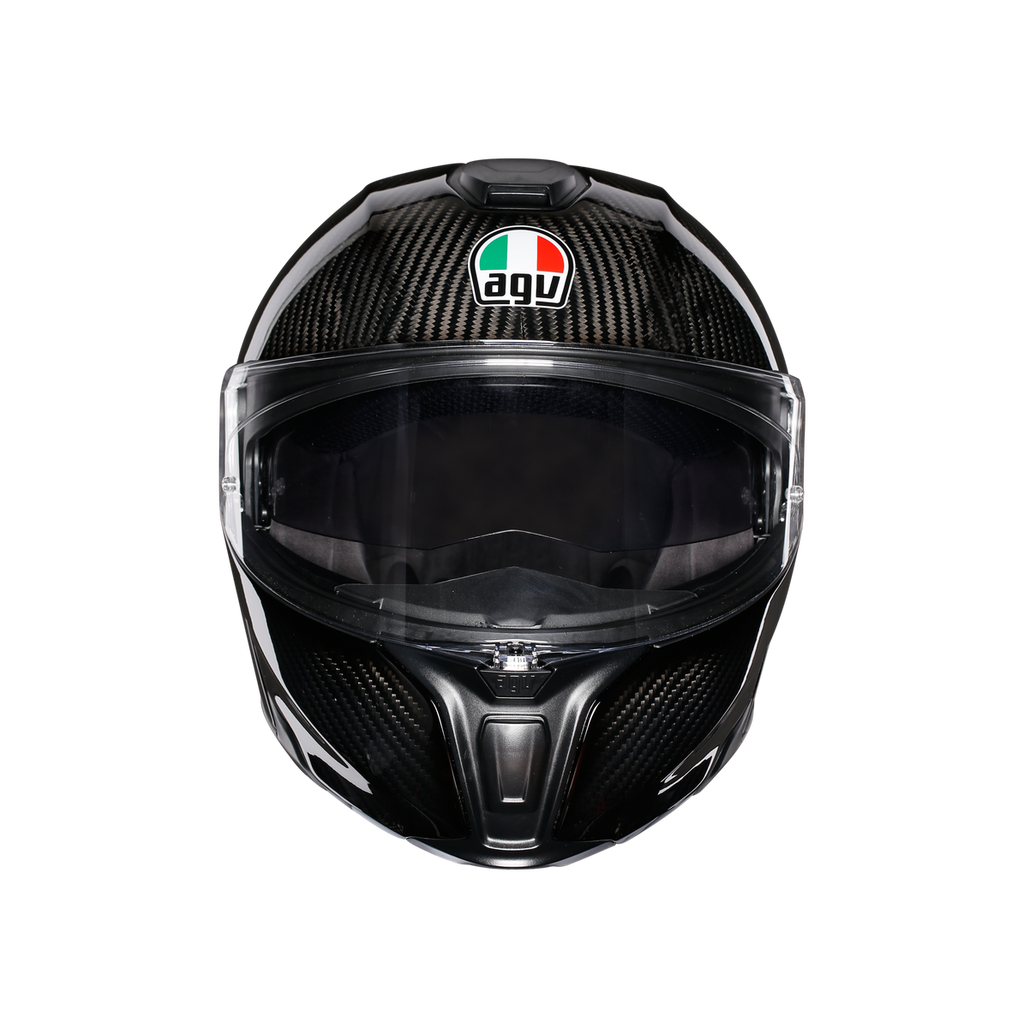 Modular helmet wearers, rejoice! The AGV Sport Modular Carbon Helmet is here and ready to lay down those miles with you. Built with the AGV Pista GP R in mind, the Sportmodular has the same protection and lightweight construction. The helmet liner is two-sided and reversible, so you can pick the best level of comfort depending on the weather. The GT3 visor is prepared for the Pinlock 120 insert lens, which is race-level anti-fogging at your fingertips. Metal hardware at the chin bar closes the bar securely. Swap out the visor effortlessly with no tool required.