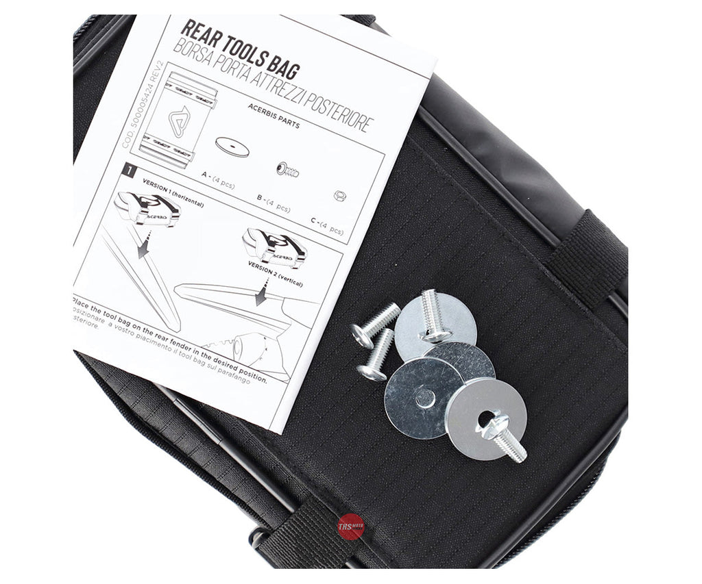 Carry your tools easily, with this 2 litre rear fender tool bag for your dirt bike. Triple closure system for secure tool storage, and rubber coated outer fabric for easy cleaning and water resistance.