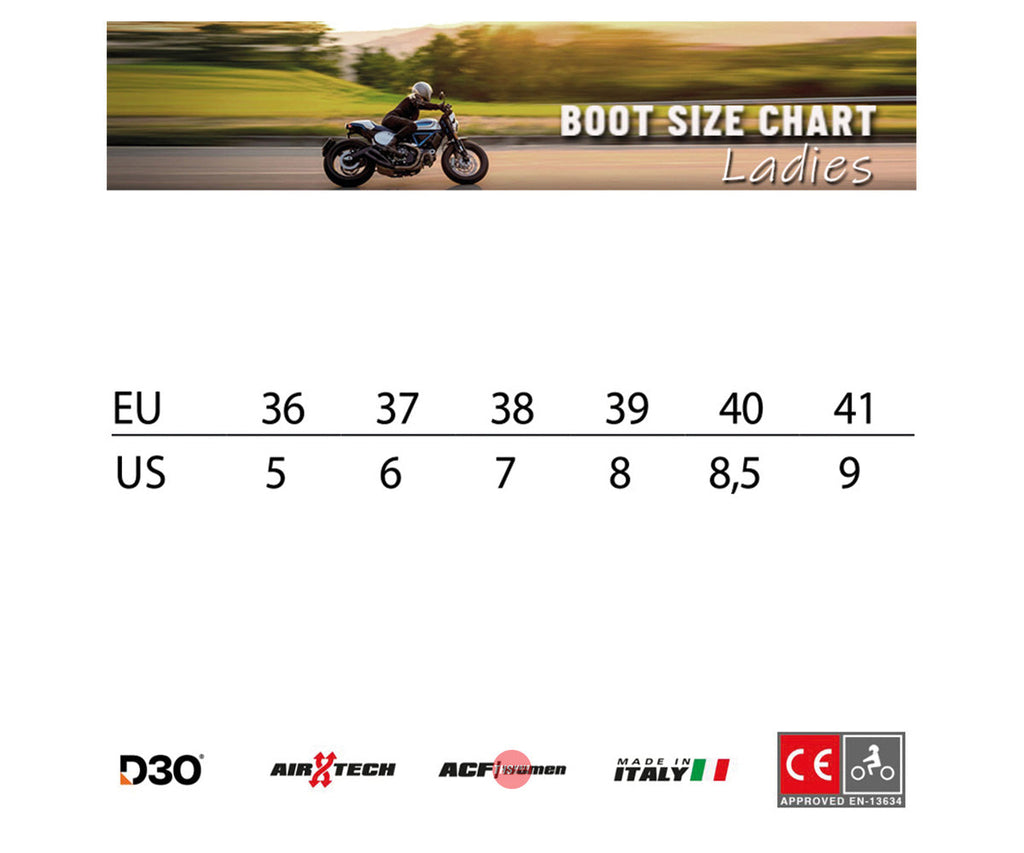 The Lennox 3 motorcycle shoes are part of Falco's protective footwear collection. With a hi-top sneaker design, they are comfortable, stylish, and much safer than your daily pair of sneakers.As an urban style of biker boots for women, the Lennox 3 Ladies motorcycle sneakers have been specifically designed and constructed on a women's boot last. This means they are ergonomically designed for the riding woman who wants to combine style, comfort and protection on her bike.