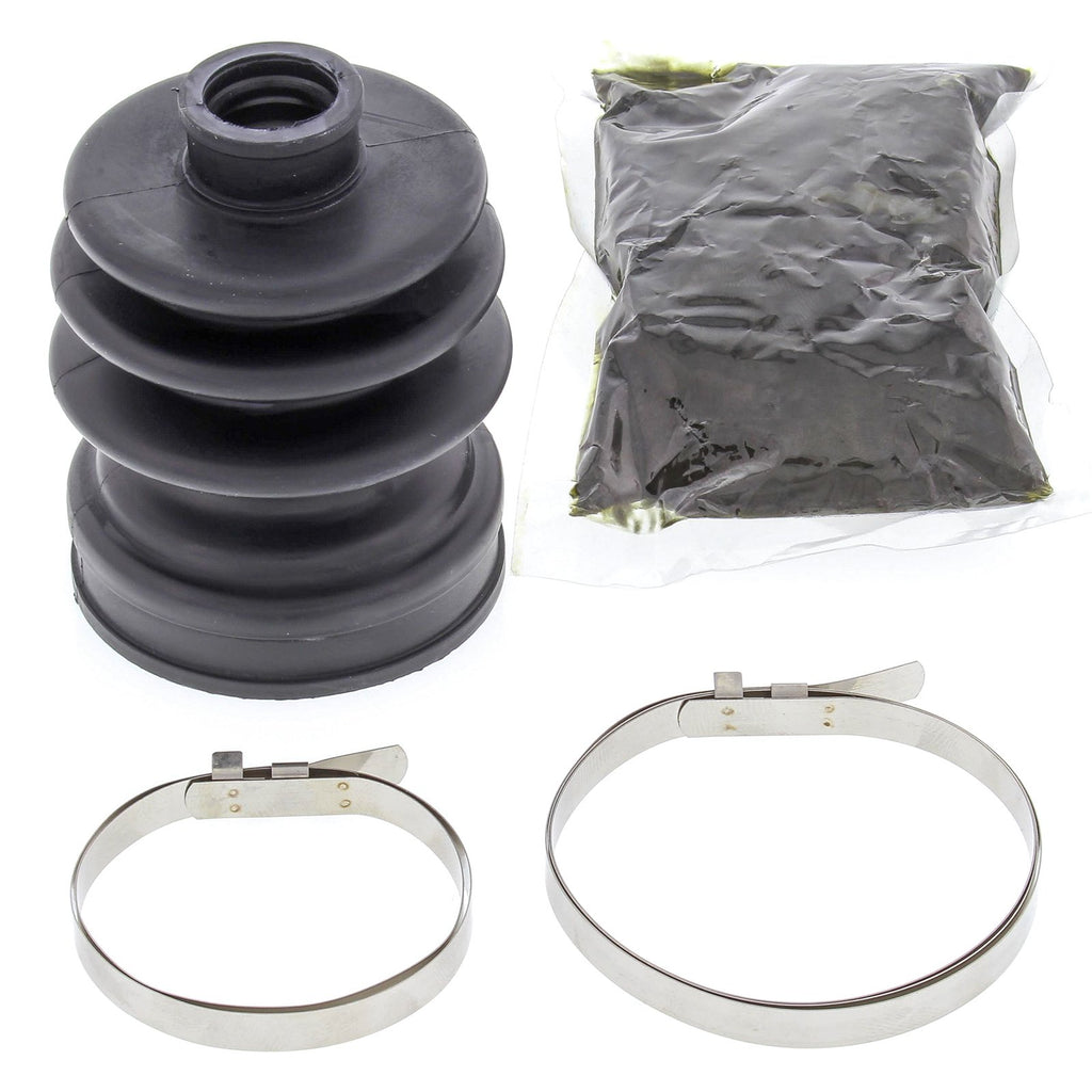 The All Balls CV Boot material is compounded from an OEM grade DCR66 rubber that is formulated specifically for the demanding requirements of todays ATVs and UTVs. 40% higher tensile strength than conventional CV boot material suitable for the high joint angles of modern ATVs and UTVs. 50% more abrasion-resistant than conventional CV boot material to ensure a long life in harsh off-road environments. Rubber compound is tested to -40 F to ensure good performance and long life at low temperatures. Lithium-based Molybdenum Grease insures good lubrication for long CV joint life. Easier to install than most OEM and aftermarket boots. Sold each. Does not require the use of a Banding Tool . Specifications: H: 84mm SD: 17mm LD: 54.5mm Shaft I.D.: 17 CV Body I.D.: 54.5 Length: 84 Kits include: Two stainless steel clamps that are designed to be tightened without the use of special tools.
