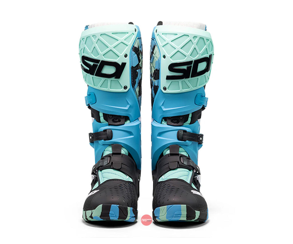 The Sidi Crossair X motocross boots deliverall of the support, control and protection without the extra burden.Designed for the rigors of MXGP and SX, the Crossair X features engineered microfiber construction that stands up to the toughest conditions. An outstanding level of safety is achieved with high-density impact protectors covering the entire boot in a light and flexible structure engineered to perform. Afiberglass exoskeleton provides support during jump landing, and a 3-point anti-hyperextention system protects from dangerous movements. Premium nylon buckles ensure durable and tough closure system. The sole, powered by SuperCross- and MXGP-proven Materiis compound, provides an endless level of total grip and durability to tackle every circuit.