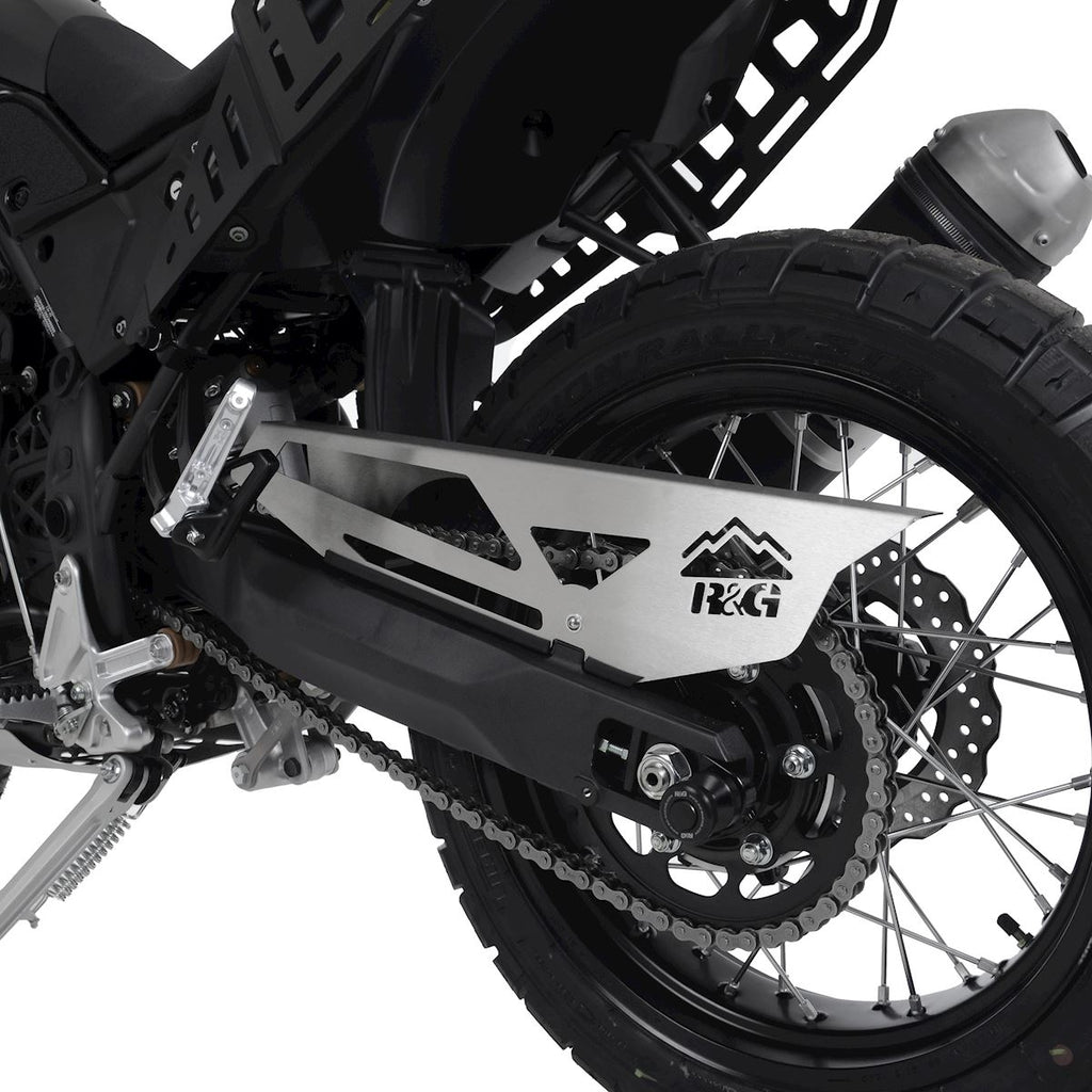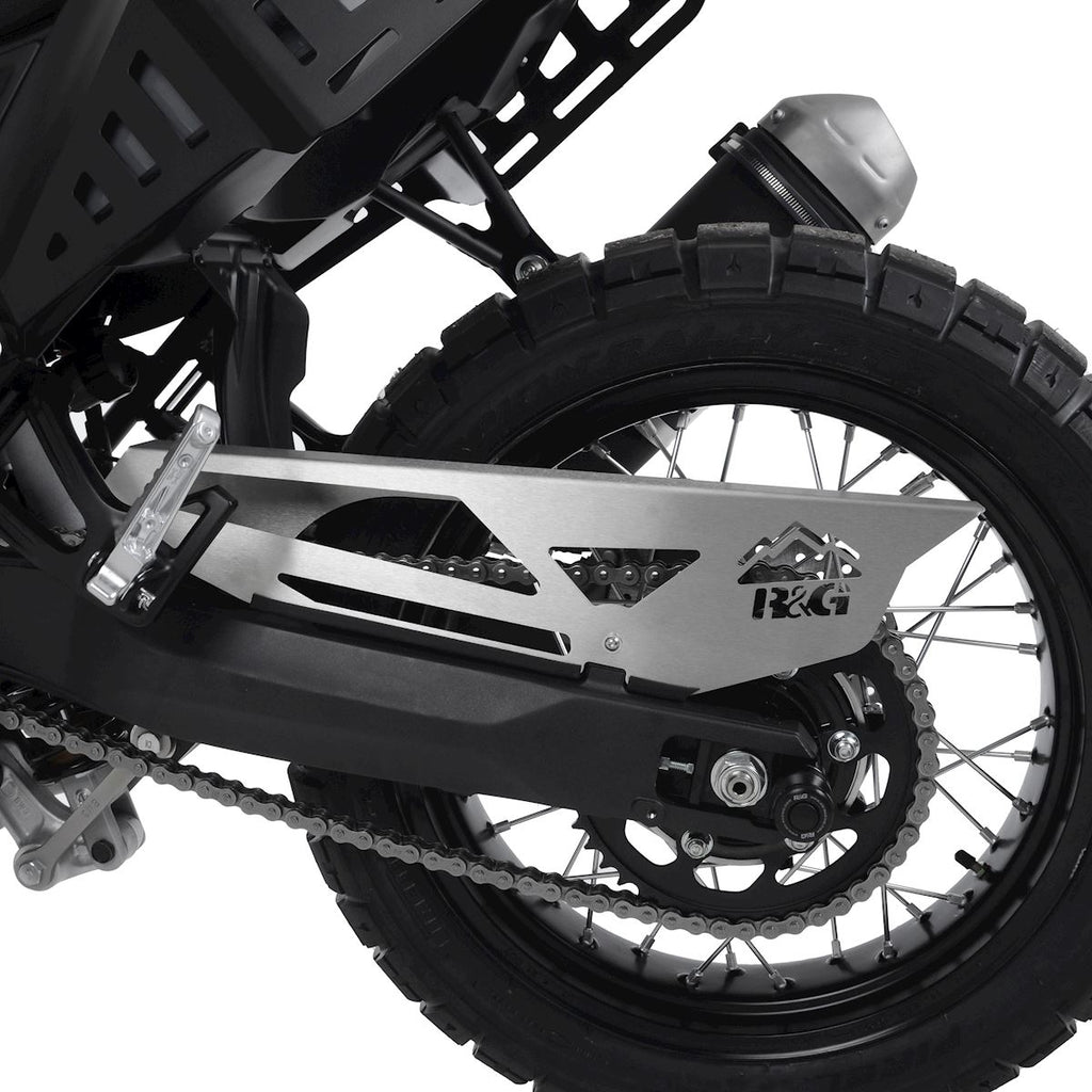 R&G Chain Guards offer complete chain coverage from near the swingarm pivot point to past the rear sprocket. Ensuring the chain is fully protected as well as preventing material licking up off the chain and onto the tyres. Made from aluminium (in most cases), R&G Chain Guards are easy to install using existing mounts. Finished in Brushed Aluminium allowing for a high quality, durable finish that looks fantastic.