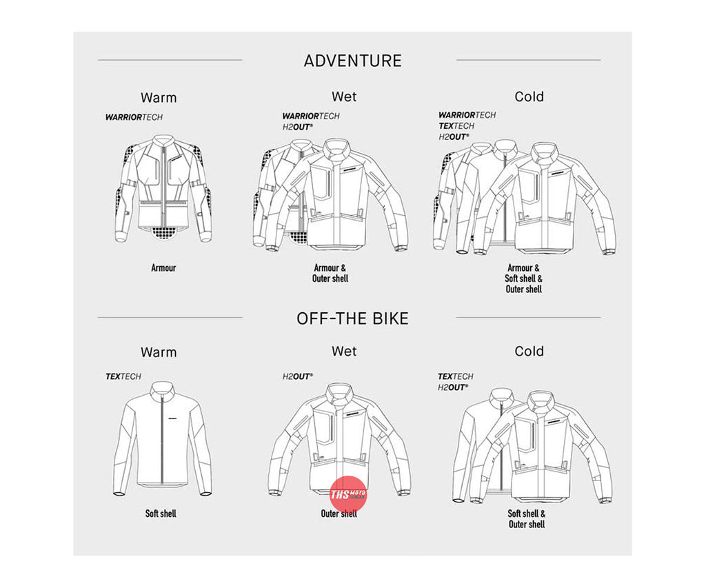Mission-T Shield is the top of the range outer shell that you can wear over any other Spidi Step-In Armor range (Mission-T or Vision Light) soft shell or base armour.