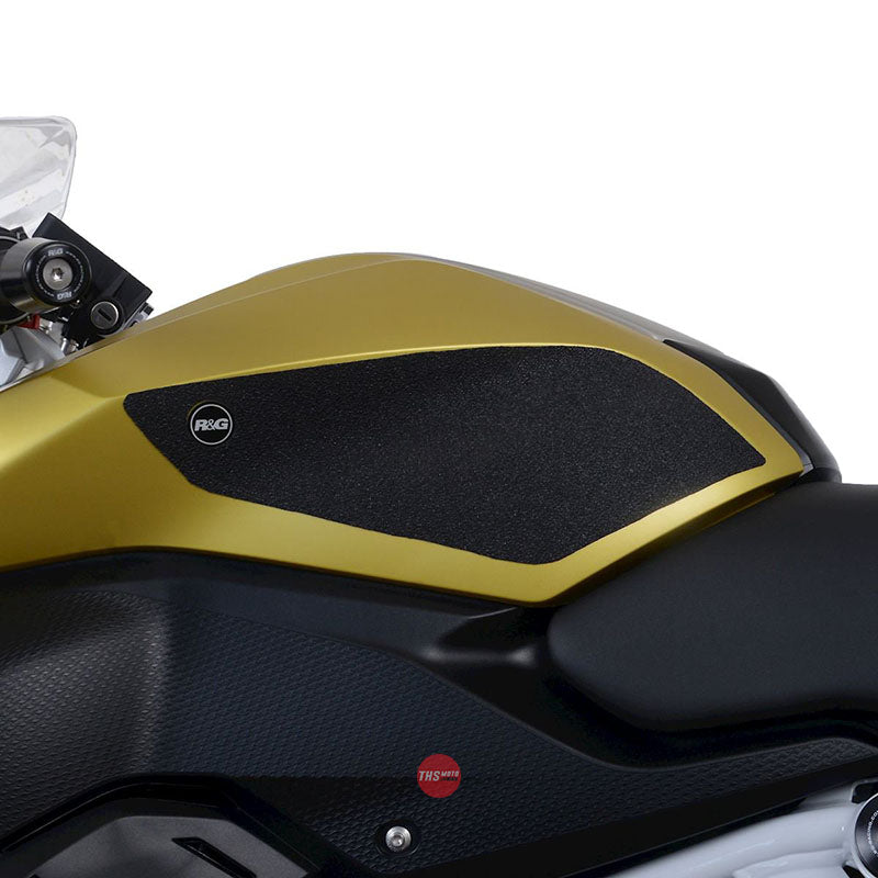 R&G Tank Traction Grips for BMW R1250 RS '19- (EZRG125) R&G Tank Traction Grip kits are available for many different bike styles and brands, with new applications released regularly. The unique R&G Tank Traction Grip texture was specifically designed to be both soft and durable, providing the rider with the grip and feel he/she needs to assist in better bike control, enabling the rider to maintain a stable body position while cornering and braking, whilst also relieving fatigue and providing the rider with complete confidence allowing him/her to fully focus on the road (or track) ahead instead of slipping and sliding on the tank. Each Tank Traction Grip kit is supplied with precision pre-cut adhesive pieces, designed to fit the intended bike, typically in either 2, 4 or 6 pieces (in total) depending on the shape of the tank and adjoining fairing. The high-strength adhesive backing ensures a highly durable product that will stay exactly where you put it, as well as not affecting or damaging paintwork. R&G works in both wet and dry conditions and is equally at home on the track as it is on the commute home! Please note: R&G Tank Traction Grips now come with a 25mm diameter stick on emblem. This 2-piece Tank Traction Grip kit has been specially designed for the BMW R1250 RS '19- models. Made in the UK
