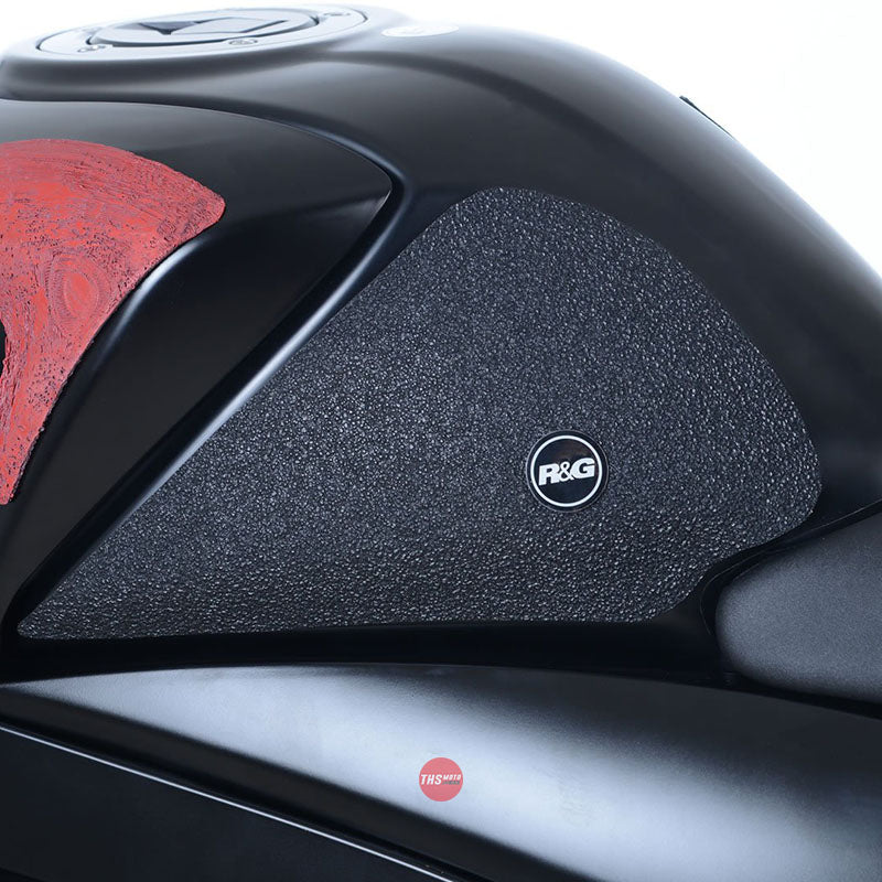 R&G Tank Traction Grip kits are available for many different bike styles and brands, with new applications released regularly. The unique R&G texture was specifically designed to be both soft and durable, providing the rider with the grip and feel he/she needs to assist in better bike control, enabling the rider to maintain a stable body position while cornering and braking, whilst also relieving fatigue and providing the rider with complete confidence allowing him/her to fully focus on the road (or track) ahead instead of slipping and sliding on the tank. Each Tank Traction Grip kit is supplied with precision pre-cut adhesive pieces, designed to fit the intended bike, typically in either 2, 4 or 6 pieces (in total) depending on the shape of the tank and adjoining fairing. The high-strength adhesive backing ensures a highly durable product that will stay exactly where you put it, as well as not affecting or damaging paintwork. R&G Tank Traction Grips work in both wet and dry conditions and is equally at home on the track as it is on the commute home!