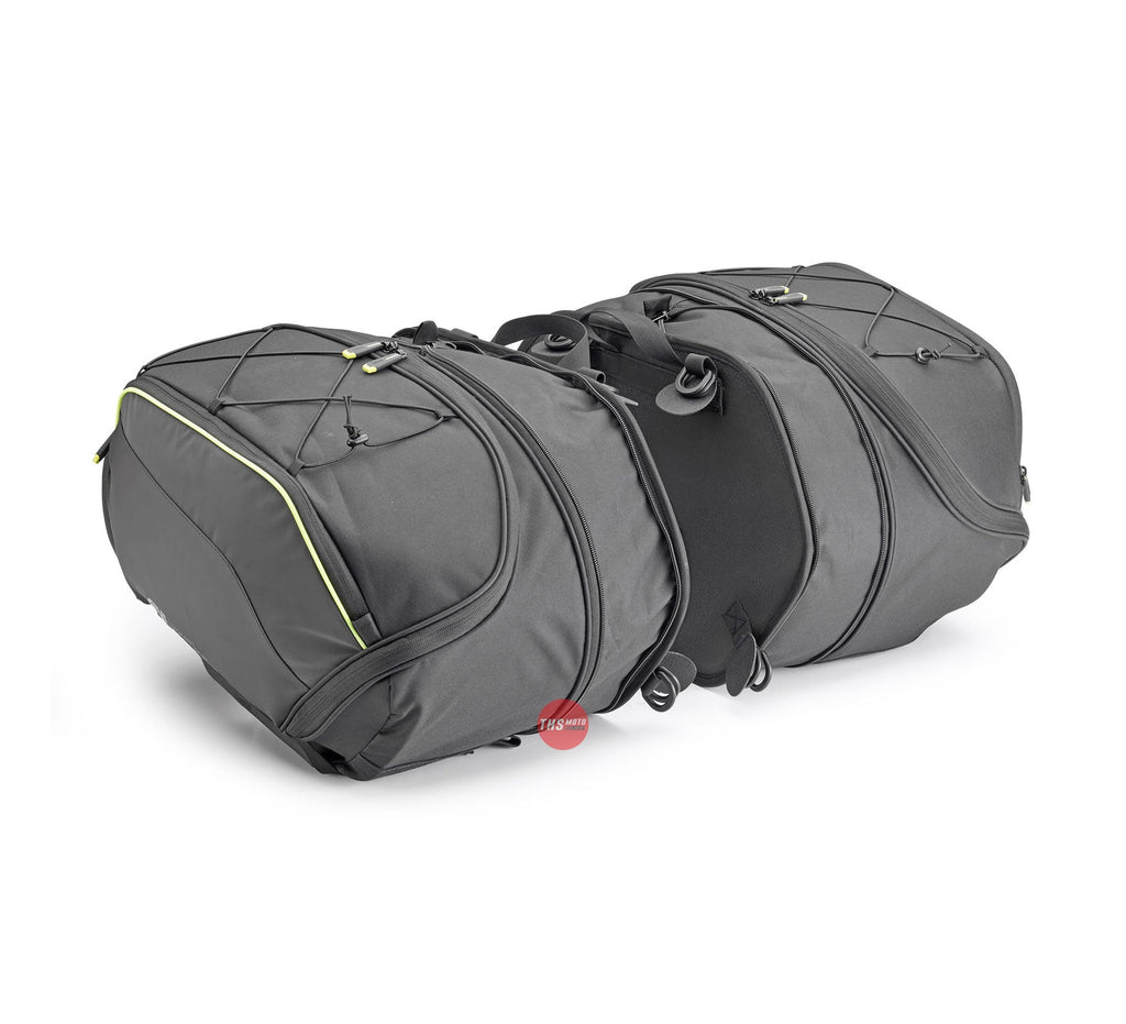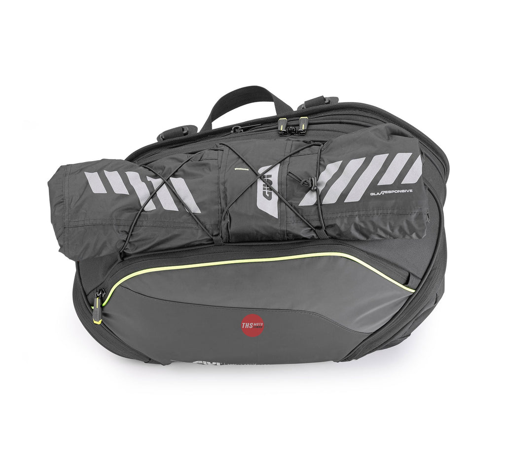 Pair of expandable side bags, 30 ltr Materials: • Polyester 600D/PU W/R • Inserts in Pu • Fluo yellow reflective piping • Matt black reflective material As standard: • 1 external frontal pocket with zip equipped with puller locking system against fluttering • Reflective patterned prints for greater visibility • Expandable from 20 to 30 litres • Removable inner reinforcement • Yellow fluo waterproof inner bag to ensure load watertightness • Load compression belts, also allow the bag to be stabilized to the side frame • Ring with straps to be placed under the saddle to allow the bags to be attached by means of a double ring system • Reflective inserts for high visibility at night • Multipurpose elastic lanyard for additional load