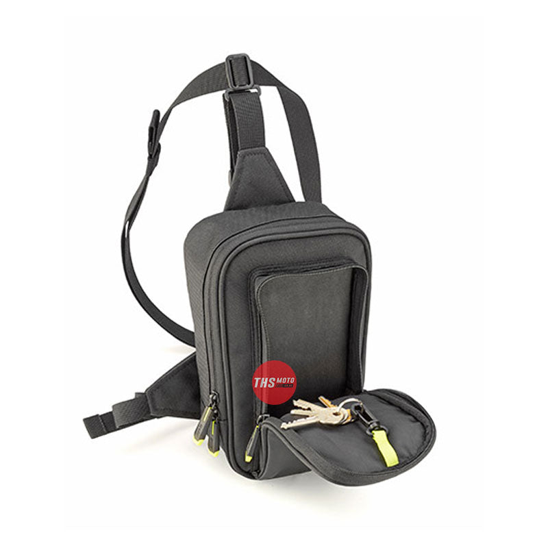 Leg bag with inner and front pockets. Attaches to your waist and upper thigh. Perfect for easy access to wallet and/or phone while on your bike.