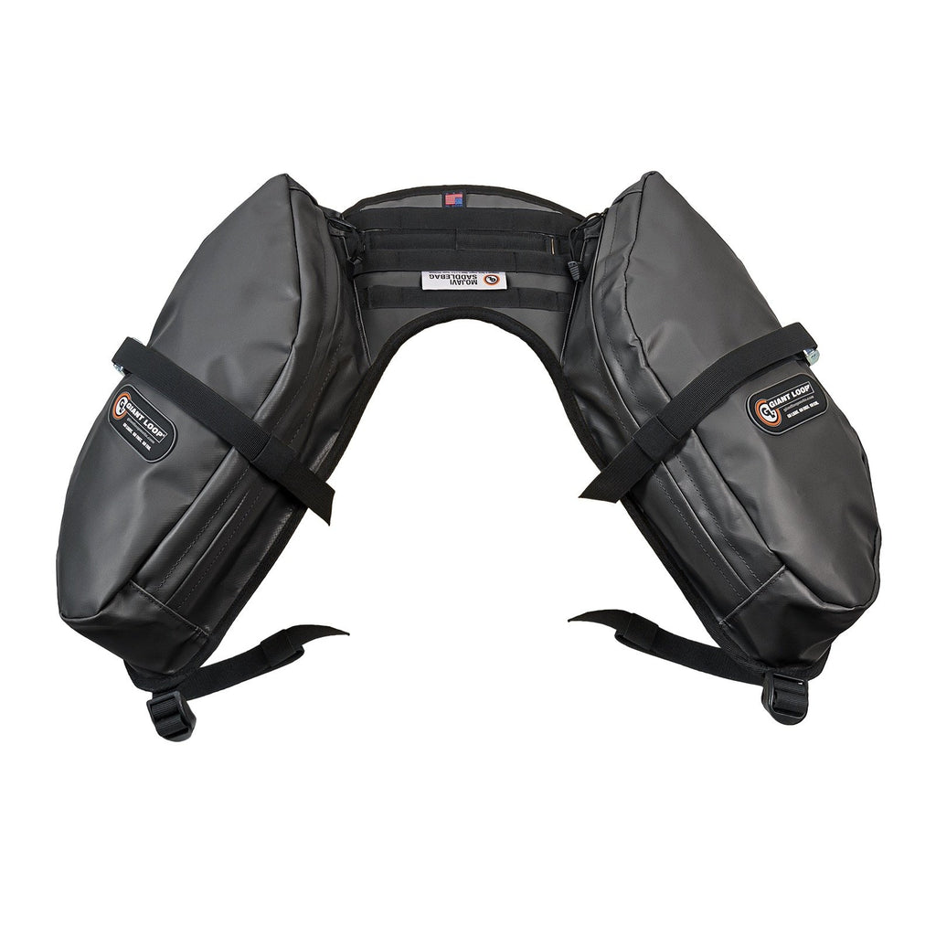 Take a load off and improve rider endurance and comfort by transferring weight from a backpack to your motorcycle with the rackless MoJavi Saddlebag Motorcycle Luggage System. Adventure Proof, sewn construction uses rugged materials and resists water, mud, and dust. Straps on and stays on”no matter what.