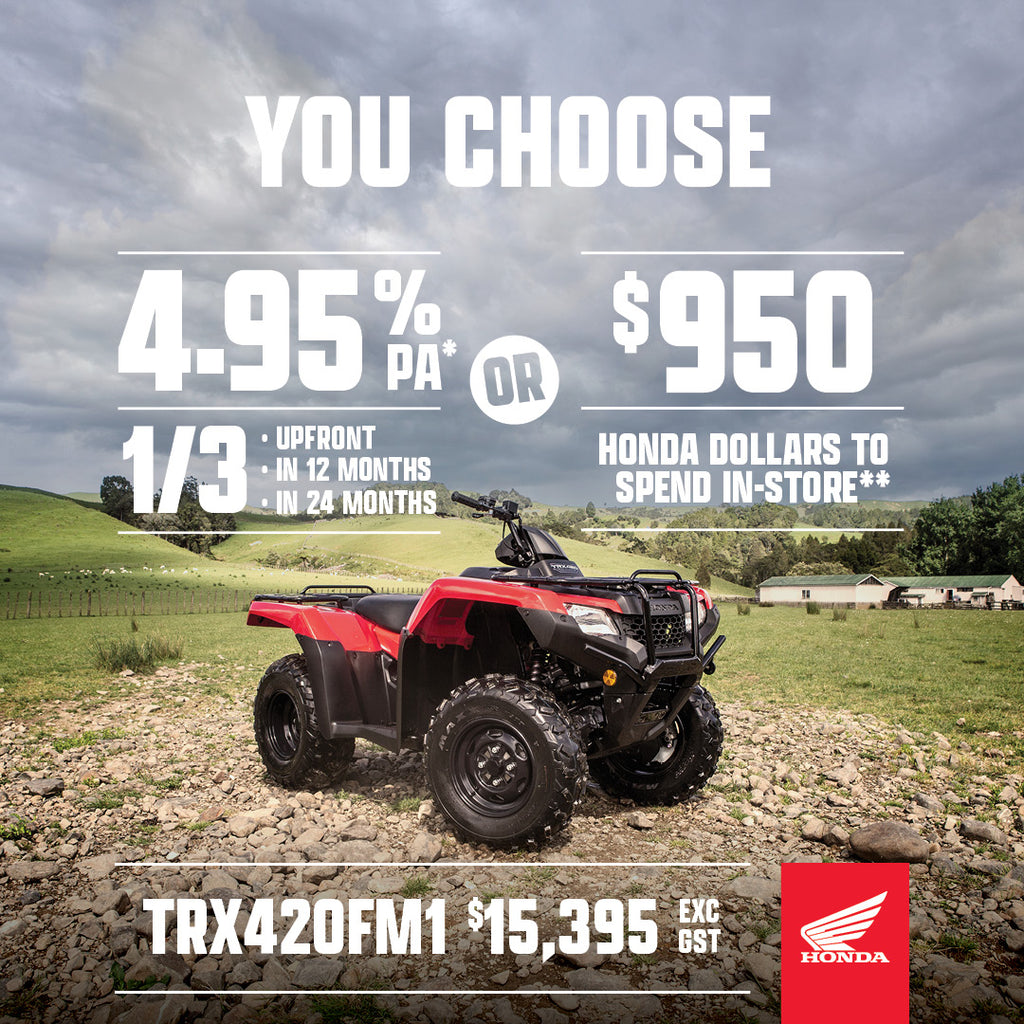 The 420 now utilises the same frame as the 500cc models. The frame is 20 percent stiffer than before. Meaning your ATV can really handle the tough stuff. The TRX420FM1 is one of Honda’s most loved and biggest selling ATVs and now it’s even better. It’s your do-everything benchmark seller with a fuel-injected 420cc, OHV liquid-cooled engine and a strong 5-speed manual transmission. This ATV has all the features to make easy work of hilly terrain.