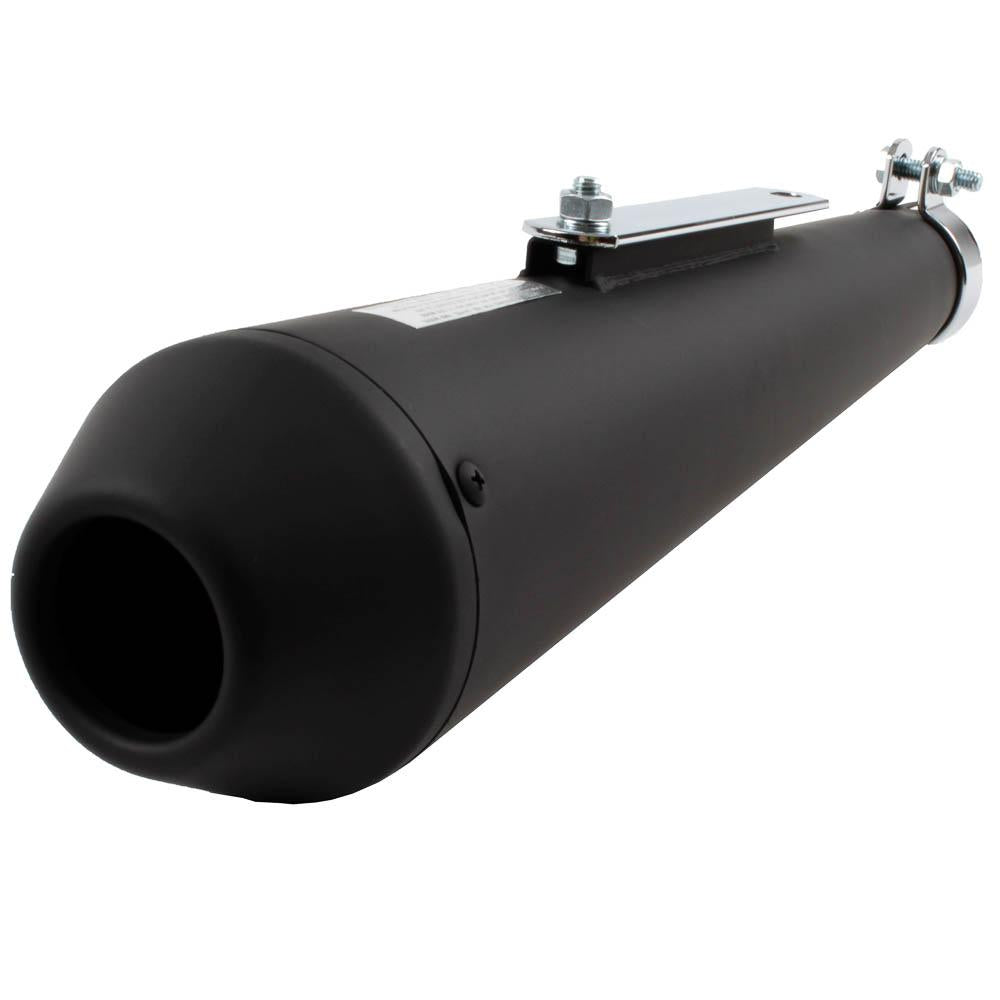 Perfect for those looking for something unique without being over the top. The traditional reverse cone muffler in a shorty version. Capable of fitting 1-3/4" pipes and 1-3/8", 1-1/2" and 1-5/8" pipes with the included reducers, while the included clamp allows for quick and easy installation. The removable baffle can be repacked with muffler packing for quieter running or completely removed to raise those decibels.