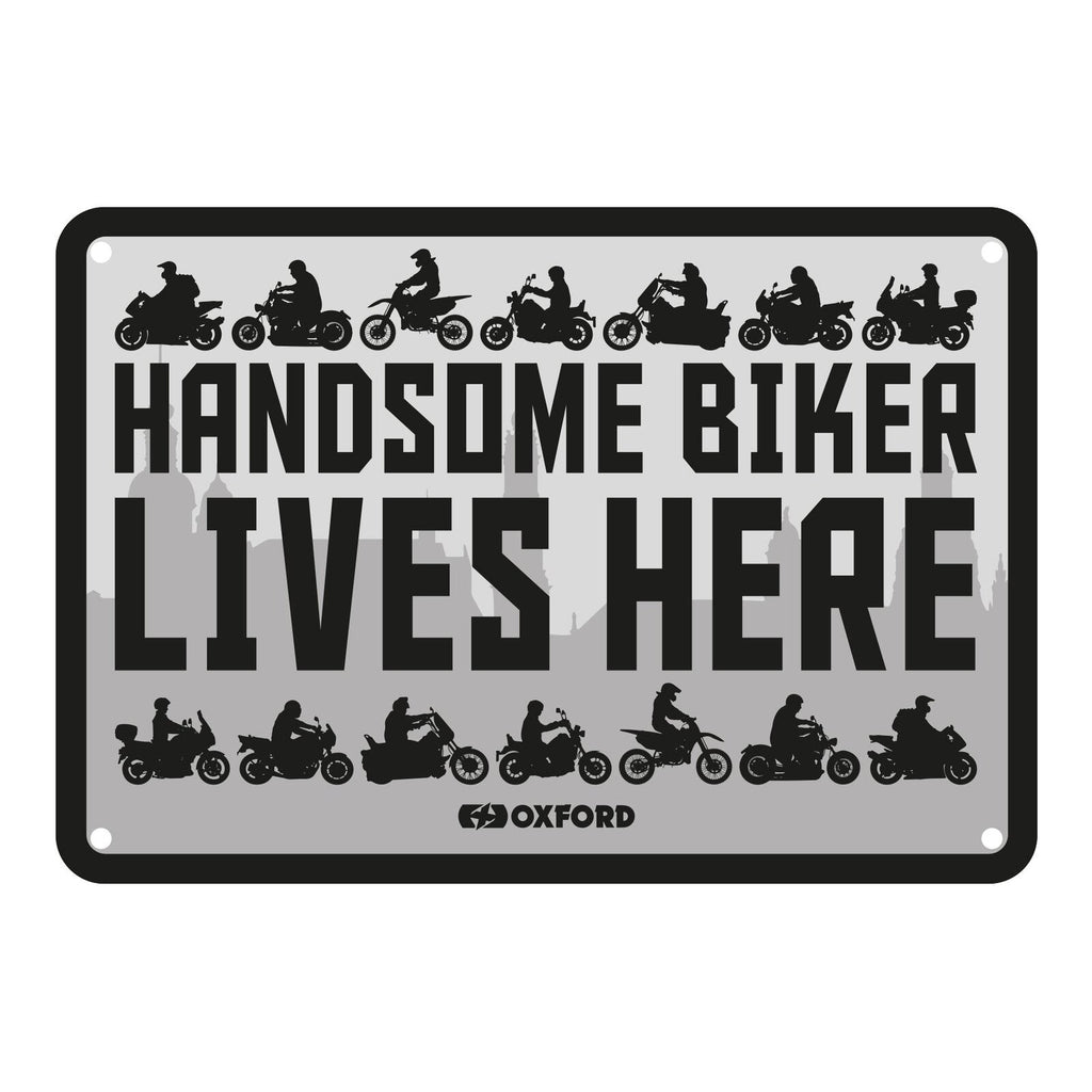 Oxford Garage Metal Sign: "Handsome Biker Lives Here"