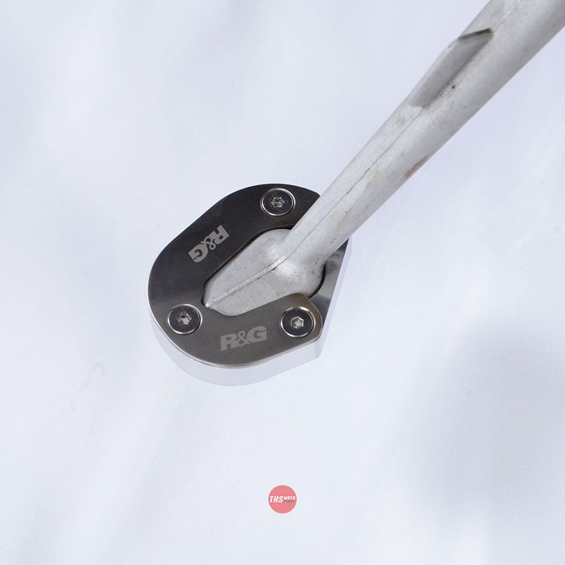 Kickstand Shoe for BMW S1000RR '18- (PKS0127SI) Never forget your sidestand puck again! Kickstand Shoes bolt onto the bottom of the sidestand, to enlarge the original's footprint by up to 100%, significantly spreading the load placed upon it, to help prevent the stand piercing' the ground. Despite this enlargement, the Shoe does not affect ground clearance or interfere with the chain run during normal riding. Available for nearly 100 different bikes, covering popular adventure, sports, naked and touring machines, each Shoe is bespoke to the intended bike and sandwiches the existing stand foot with an aluminium bottom level to prevent corrosion and is topped with a stainless steel lid for strength. The product can be fitted in minutes as it is clamped together with three countersunk Allen bolts. This particular kickstand shoe has been precision machined to fit the BMW S1000RR '18- models. Estimated date of availability: January 2020 This Product brought to you by THS Moto