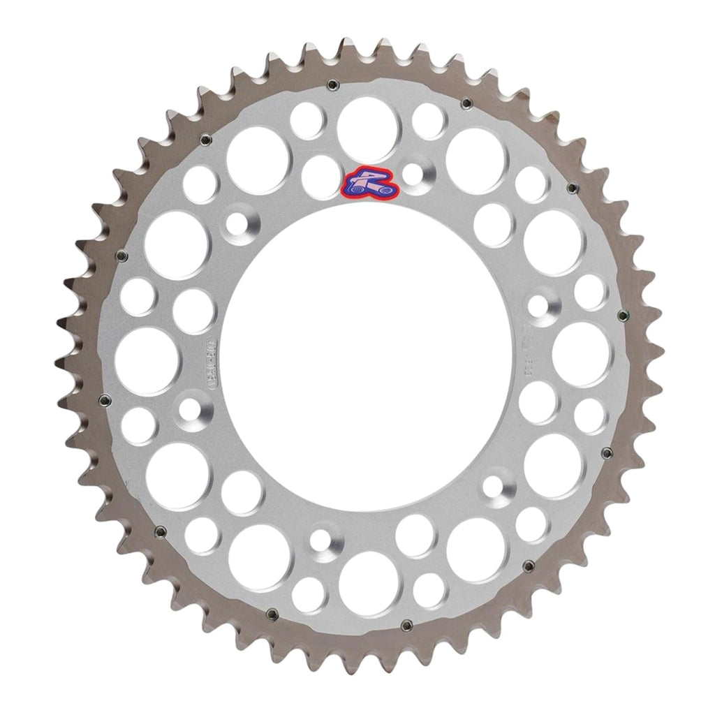 The Renthal Twinring Rear Sprocket is a long-lasting durable Off-Road sprocket that was developed and tested over the course of 5 years. The unique flat face two piece design keeps weight to a minimum and maximizes durability all while keeping a narrow profile. The outer steel ring is expanded at 200C and then fitted to the aluminum inner before cooling, this process creates a permanent bond while flat socket set screws prevent lateral movement between the rings.
