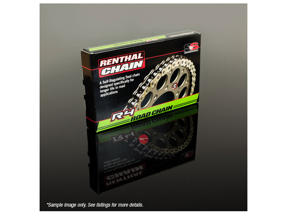 Renthal's R4 SRS Road chain is a specially developed sealed ring chain utilizing Renthal's Self Regulating Seal (SRS) technology to increase the service life of the chain in Street applications. The special SRS ring is pre-loaded during assembly creating a spring effect.