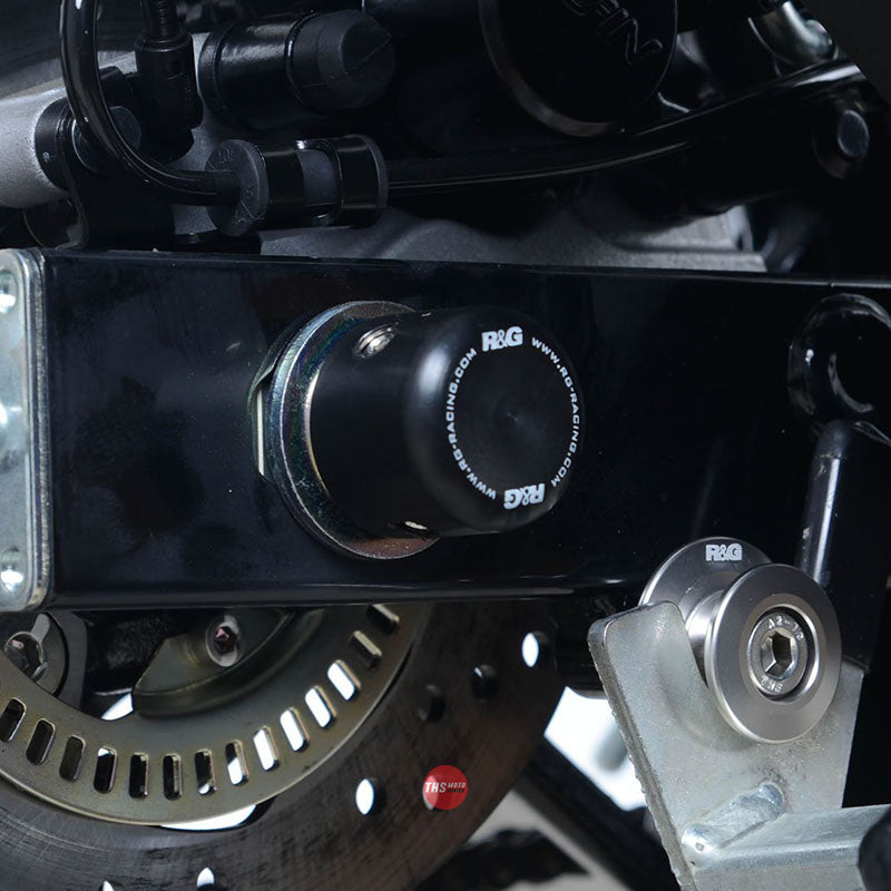 The R&G swingarm protectors provide protection for vulnerable rear end components in the event of a crash, drop or slide. Replaceable High-Density Polyethylene (HDPE) bobbins are used for superior impact and abrasion protection that helps slow the motorcycle to a smooth, controlled stop. This essential protector will keep valuable components off the ground to prevent some seriously expensive repairs after a fall. Installation is simple with no permanent modification to the bike needed.