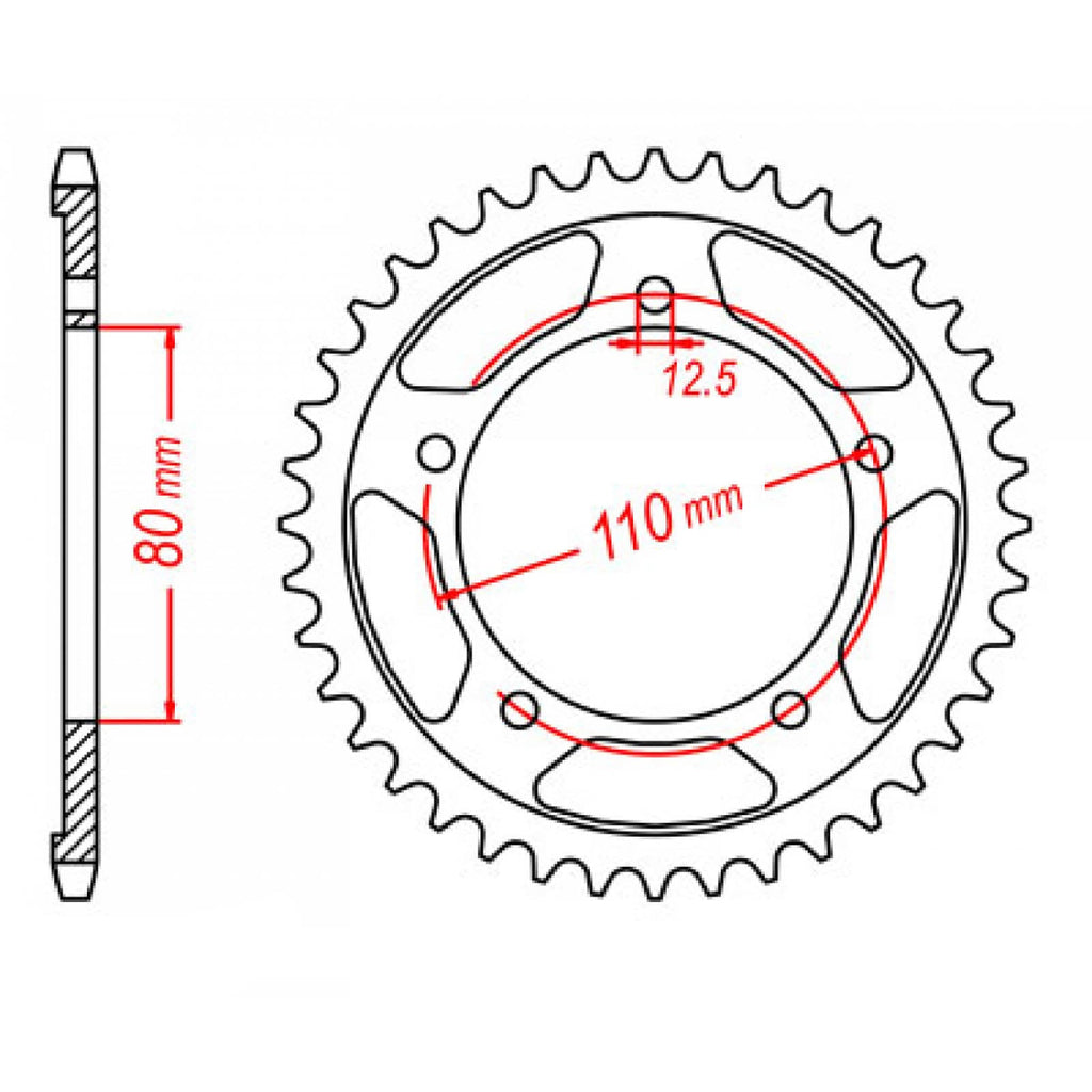 MTX OE Steel sprockets are strong and durable, heat-treated and hand-finished for longevity. Front sprockets are constructed from SCM420 chromoly steel alloy where rear sprockets are constructed from C45 high carbon steel with a Zinc electroplated finish. Designed as an OEM replacement to exceed OEM specifications at a fraction of the price, making them your ideal cost-effective solution for replacing old worn and warped sprockets.