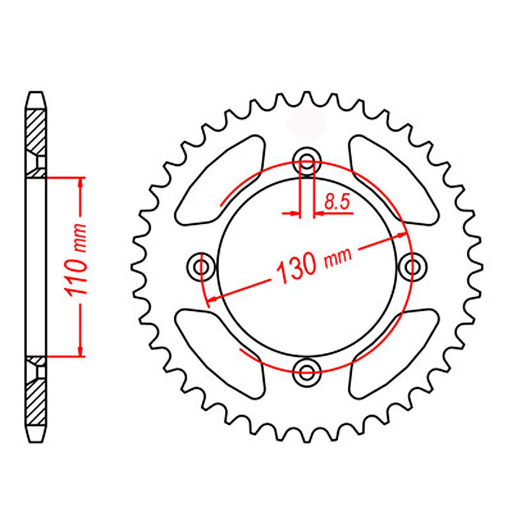 MTX OE Steel sprockets are strong and durable, heat-treated and hand-finished for longevity. Front sprockets are constructed from SCM420 chromoly steel alloy where rear sprockets are constructed from C45 high carbon steel with a Zinc electroplated finish. Designed as an OEM replacement to exceed OEM specifications at a fraction of the price, making them your ideal cost-effective solution for replacing old worn and warped sprockets.