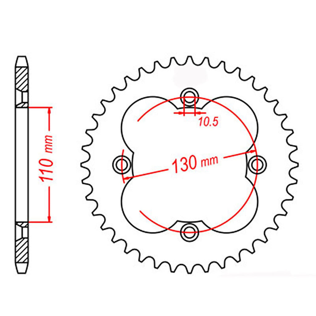 MTX OE Steel sprockets are strong and durable, heat-treated and hand-finished for longevity. Front sprockets are constructed from SCM420 chromoly steel alloy where rear sprockets are constructed from C45 high carbon steel with a Zinc electroplated finish. Designed as an OEM replacement to exceed OEM specifications at a fraction of the price, making them your ideal cost-effective solution for replacing old worn and warped sprockets.