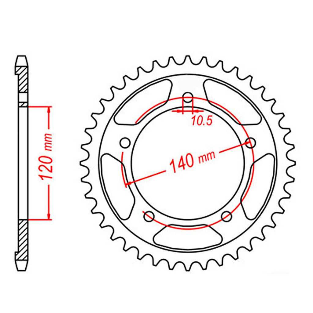 MTX OE Steel sprockets are strong and durable, heat-treated and hand-finished for longevity. Front sprockets are constructed from SCM420 chromoly steel alloy where rear sprockets are constructed from C45 high carbon steel with a Zinc electroplated finish. Designed as an OEM replacement to exceed OEM specifications at a fraction of the price, making them your ideal cost-effective solution for replacing old worn and warped sprockets.