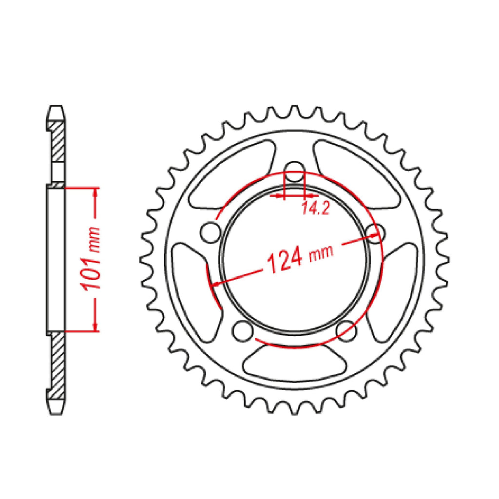 MTX OE Steel sprockets are strong and durable, heat-treated and hand-finished for longevity. Front sprockets are constructed from SCM420 chromoly steel alloy where rear sprockets are constructed from C45 high carbon steel with a Zinc electroplated finish. Designed as an OEM replacement to exceed OEM specifications at a fraction of the price, making them your ideal cost-effective solution for replacing old worn and warped sprockets.