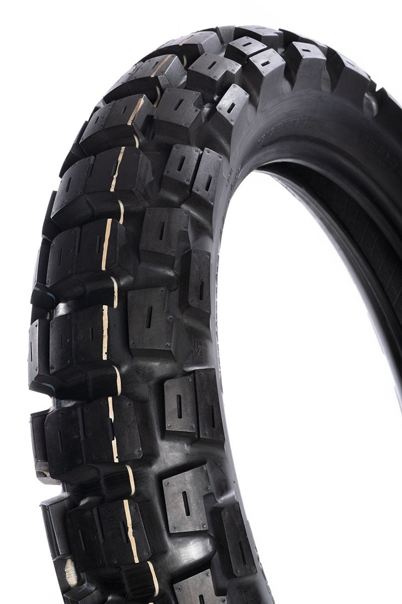 Designed by off road riders, for off road riders, for serious off road traction. Technically stronger than many other adventure tyres. Deeper tread than most adventure tyres, with distance proven compound specifically formulated to cater for a wide variety of conditions.