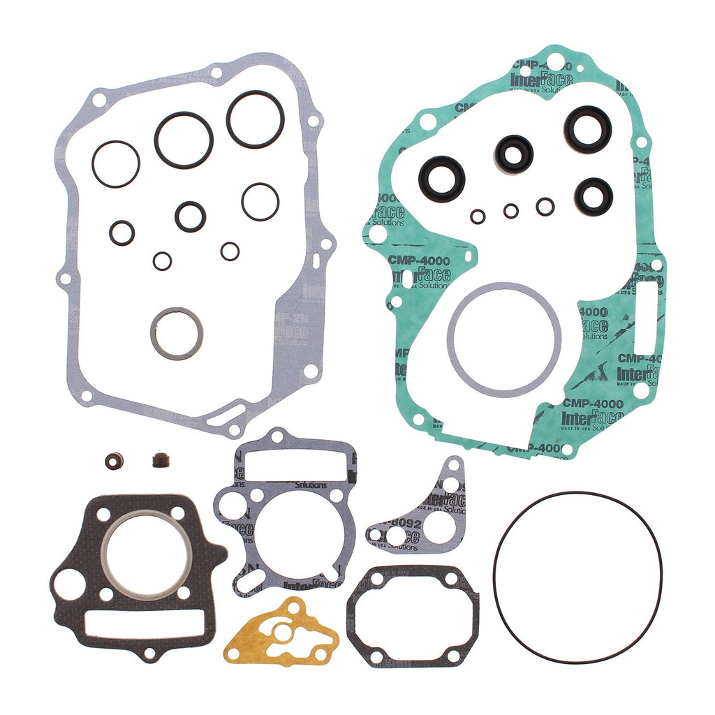 NOTE: This complete Vertex Gasket Set contains all parts as pictured. Produced in the U.S.A. with the latest materials and technology in gasket production to Vertex specifications. Vertex gaskets ensure long-lasting performance and leak prevention for your rebuild needs. Vertex's replacement gaskets and seals are available as top-end kits complete engine kits or as an oil seal kit. One kit containing all of the gaskets O-rings and valve seals necessary to rebuild the entire engine and transmission. Includes transmission seals.