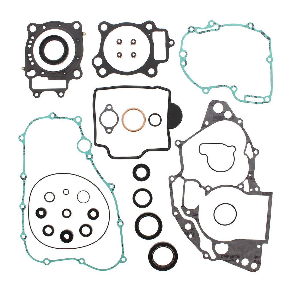NOTE: This complete Vertex Gasket Set contains all parts as pictured. Produced in the U.S.A. with the latest materials and technology in gasket production to Vertex specifications. Vertex gaskets ensure long-lasting performance and leak prevention for your rebuild needs. Vertex's replacement gaskets and seals are available as top-end kits complete engine kits or as an oil seal kit. One kit containing all of the gaskets O-rings and valve seals necessary to rebuild the entire engine and transmission. Includes transmission seals.