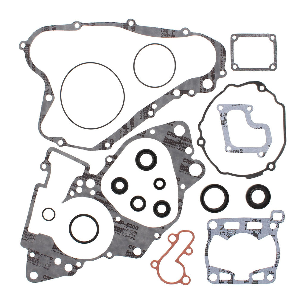 NOTE: This complete Vertex Gasket Set contains all parts as pictured. Produced in the U.S.A. with the latest materials and technology in gasket production to Vertex specifications. Vertex gaskets ensure long-lasting performance and leak prevention for your rebuild needs. Vertex's replacement gaskets and seals are available as top-end kits complete engine kits or as an oil seal kit. One kit containing all of the gaskets O-rings and valve seals necessary to rebuild the entire engine and transmission. Includes transmission seals.