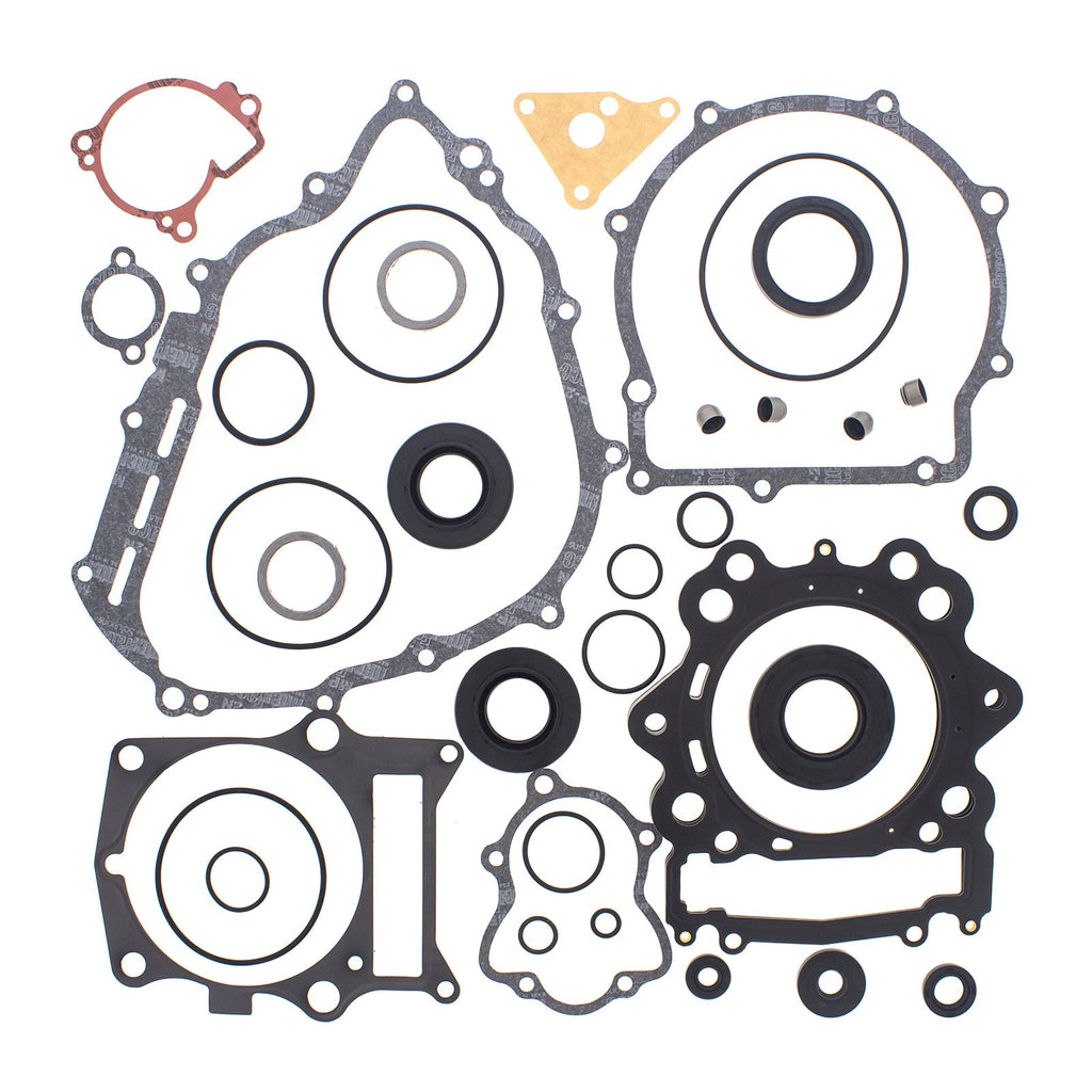 NOTE: This complete Vertex Gasket Set contains all parts as pictured. Produced in the U.S.A. with the latest materials and technology in gasket production to Vertex specifications. Vertex gaskets ensure long-lasting performance and leak prevention for your rebuild needs. Vertex's replacement gaskets and seals are available as top-end kits complete engine kits or as an oil seal kit. One kit containing all of the gaskets O-rings and valve seals necessary to rebuild the entire engine and transmission. Includes transmission seals.