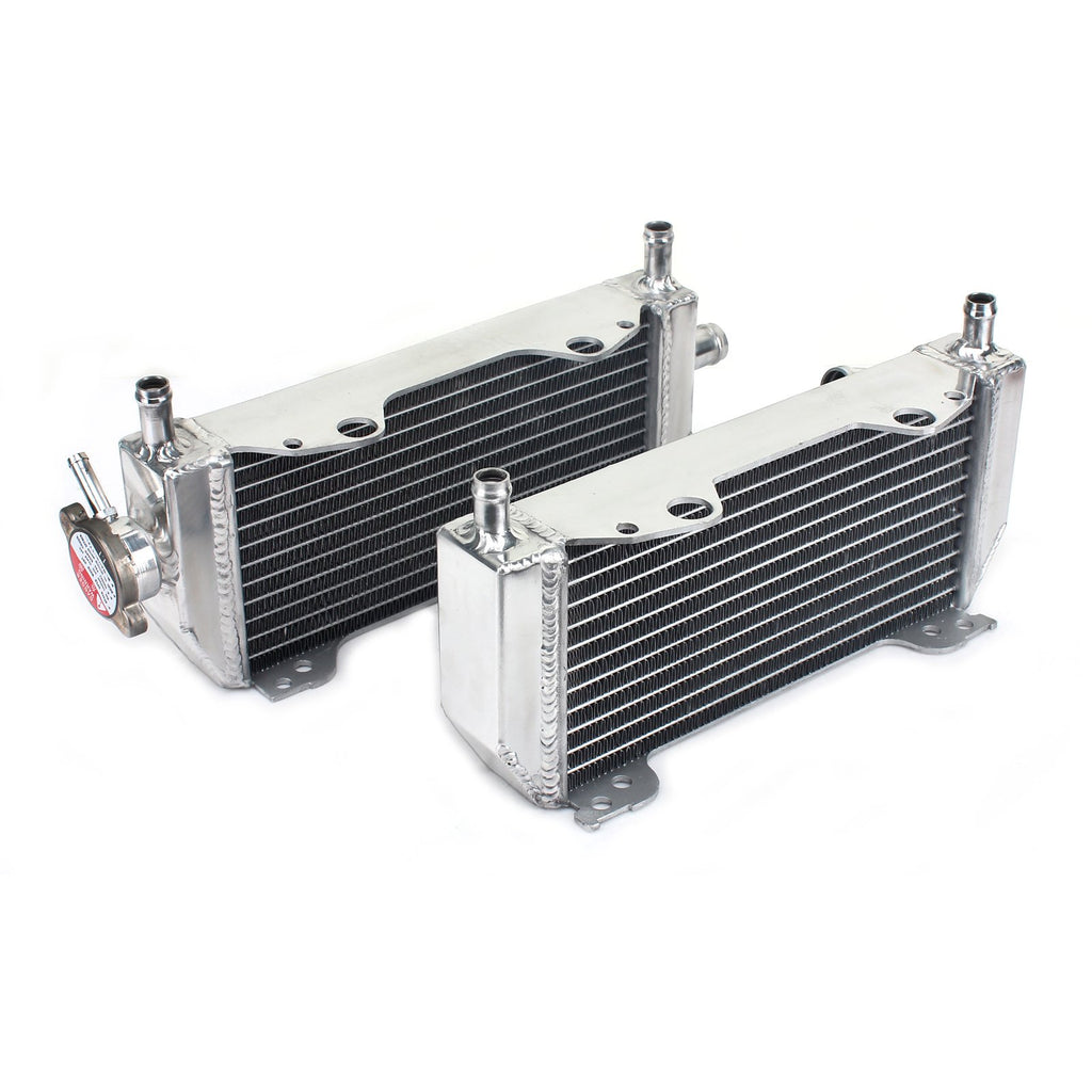 PAIRWhites aluminium radiators make great replacements to your bent cracked and damaged radiators. Whites radiators offer exceptional cooling and maximum efficiency to ensure your machine's top performance. Based on the OEM specs a hand-welded aluminium design offers both a great fit and styling. All cap side radiators will include a new radiator cap.Add a little extra style and functionality to your motorcycle with Whites quality products.- Whites radiators offer exceptional cooling and maximum flow efficiency to ensure your machines top performance- Utilizes stock mounting hardware (not included) for a great fit- Hand-welded aluminium design for a great look and functionality- Includes a new radiator cap